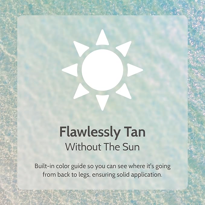 - TANNED TO PERFECTION WITHOUT THE SUN - Built-in color guide so you can see where it's going from back to legs, ensuring solid application; includes mitt and gloves to assist with your bronzing.