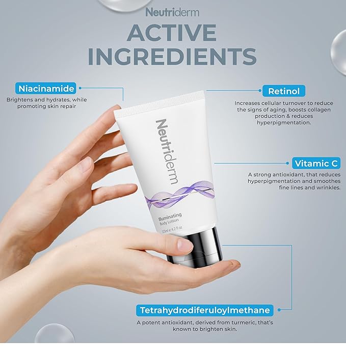 NEUTRIDERM Illuminating Body Lotion for Dry Skin, Aging Skin & Dark Spots – Retinol & Niacinamide Moisturizer for Women & Men – Vitamin-Rich Hydrating Cream for Even Tone, 4.2 oz